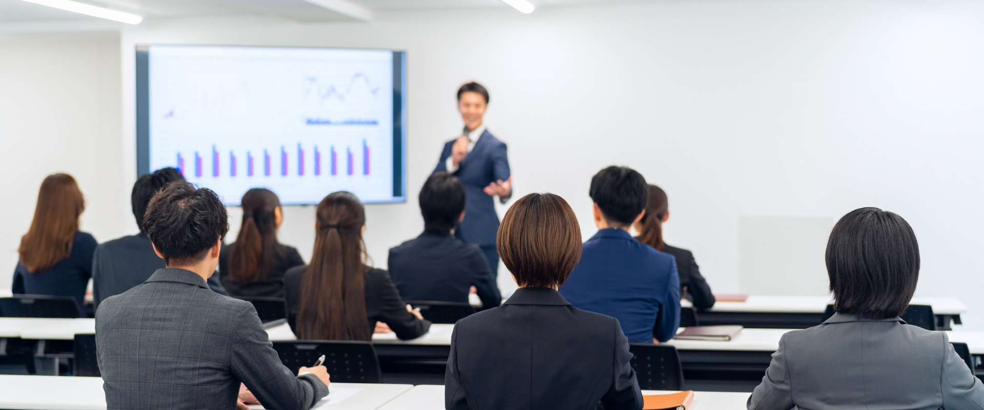 講師が指定の場所へ赴き、講演または研修を実施します。参加者の理解促進と満足度向上に努めます。